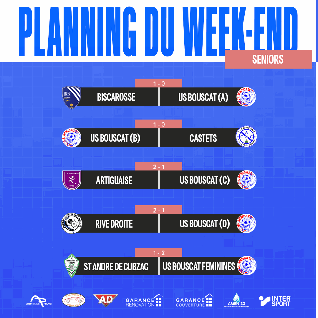Les résultats du week-end !